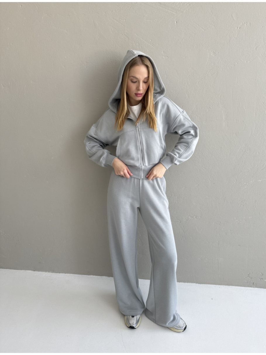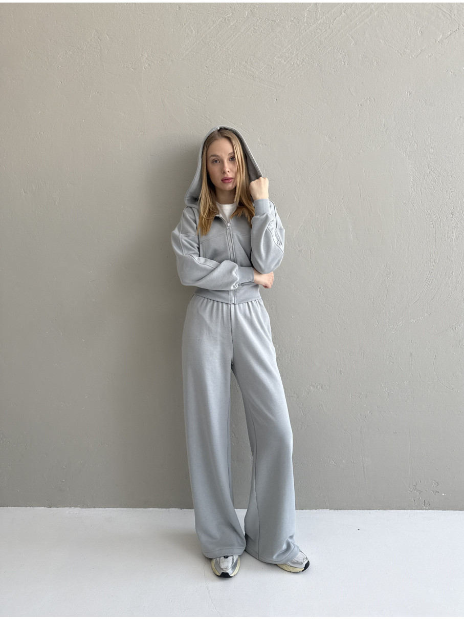 Жіночий костюм Вкорочений зіп-худі та широкі палаццо тринитка