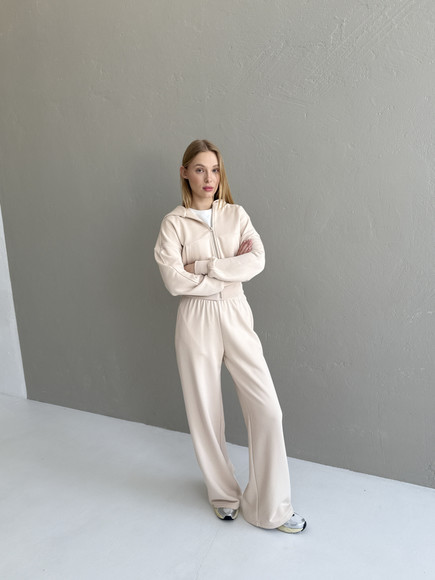 Жіночий костюм Вкорочений зіп-худі та широкі палаццо тринитка