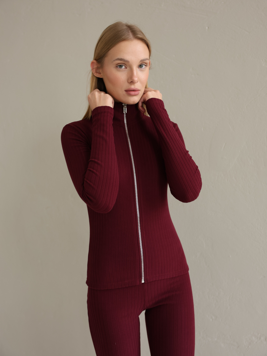 Комплект із преміального пума-рубчика - це поєднання комфорту й сучасного силуету. Кофта на блискавці має приталений крій і високу горловину, завдяки чому гарно сідає по фігурі. Штани із кльошем від коліна візуально подовжують ноги та додають образу легкості. Підходить для повсякденних луків, подорожей чи прогулянок у прохолодну погоду.