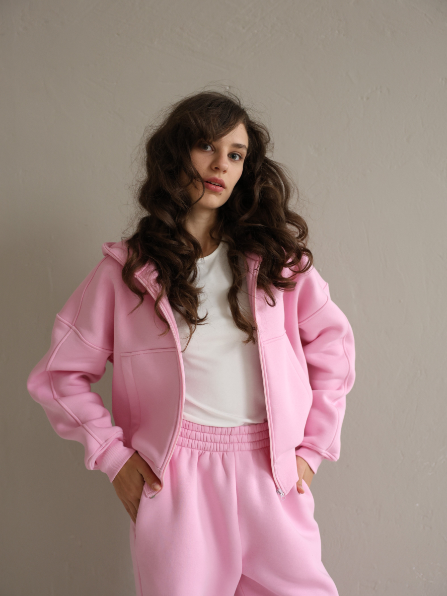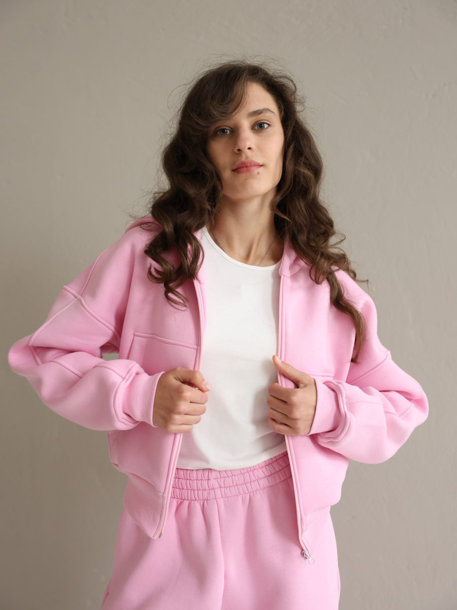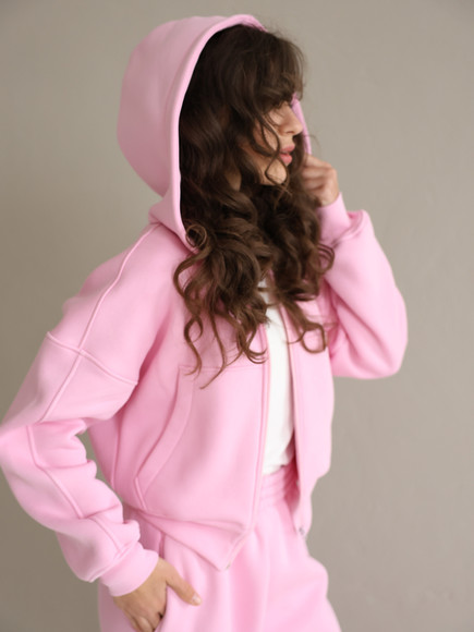 Вкорочене худі на блискавці зі зручним капюшоном створює сучасний силует і додає образу легкості.