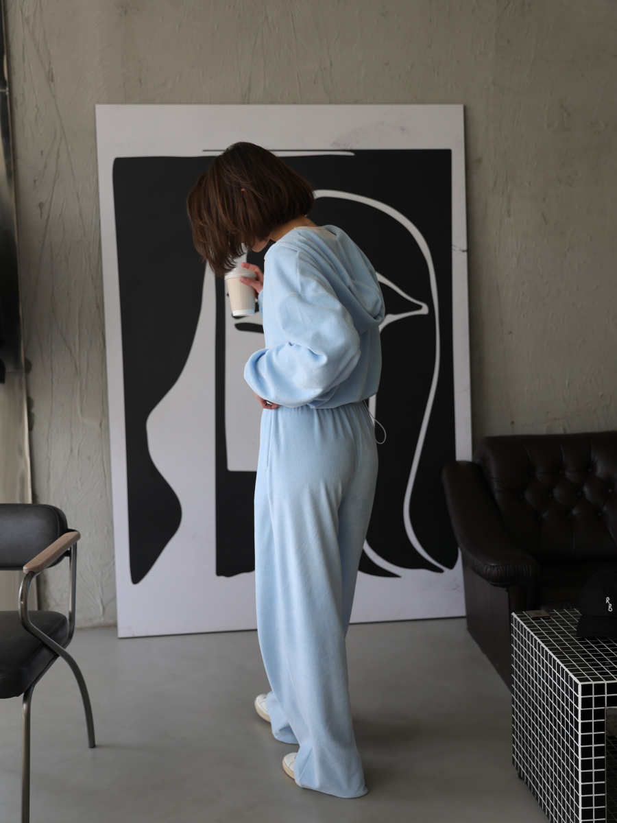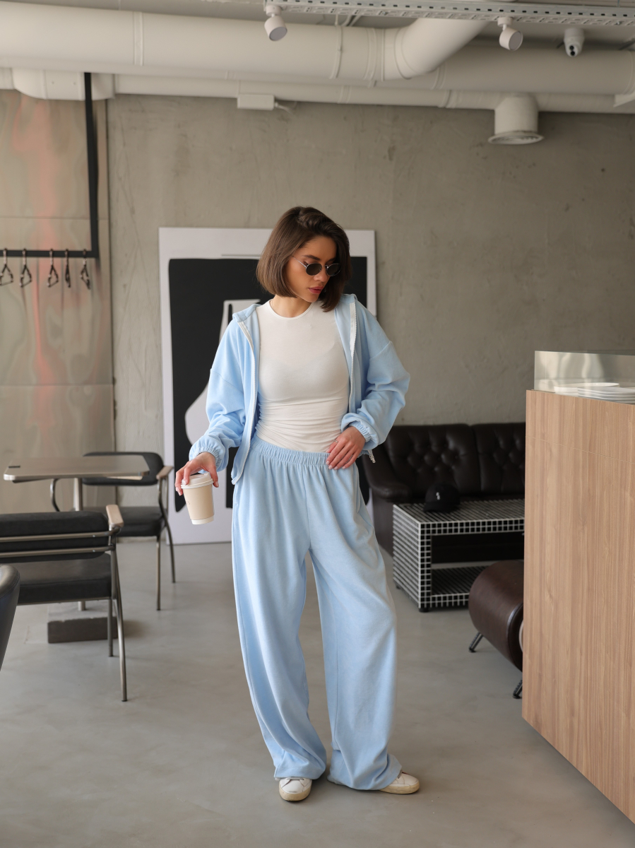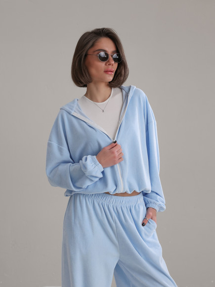Універсальний комплект, що поєднує комфорт та сучасний дизайн. М’який велюр на бавовняній основі приємний до тіла, дихає та дарує відчуття затишку в будь-яку пору року.