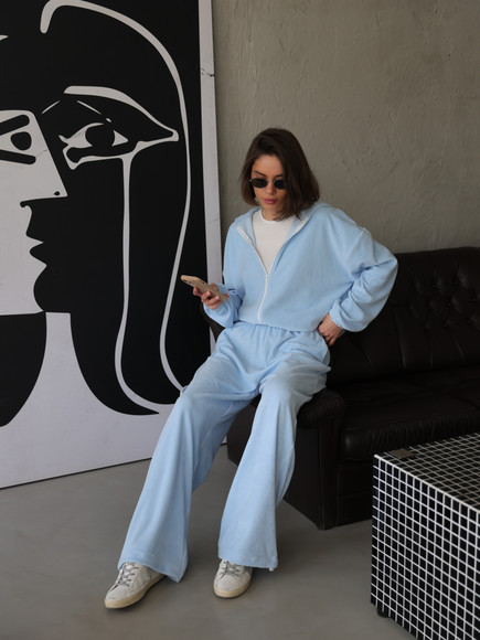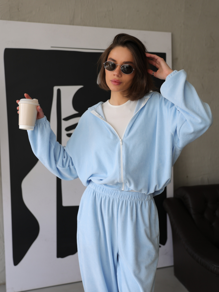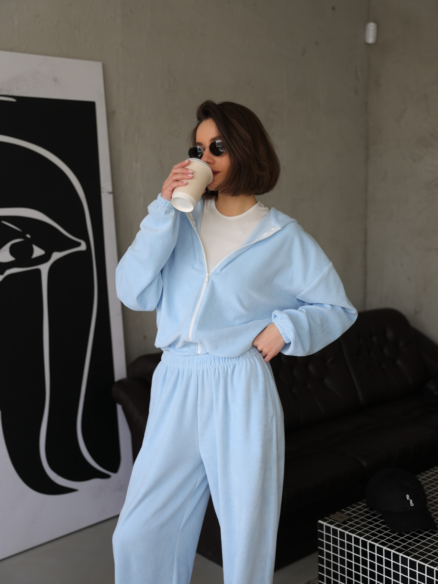 Жіночий велюровий костюм, блакитний