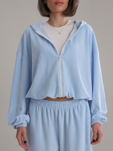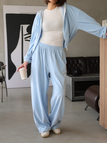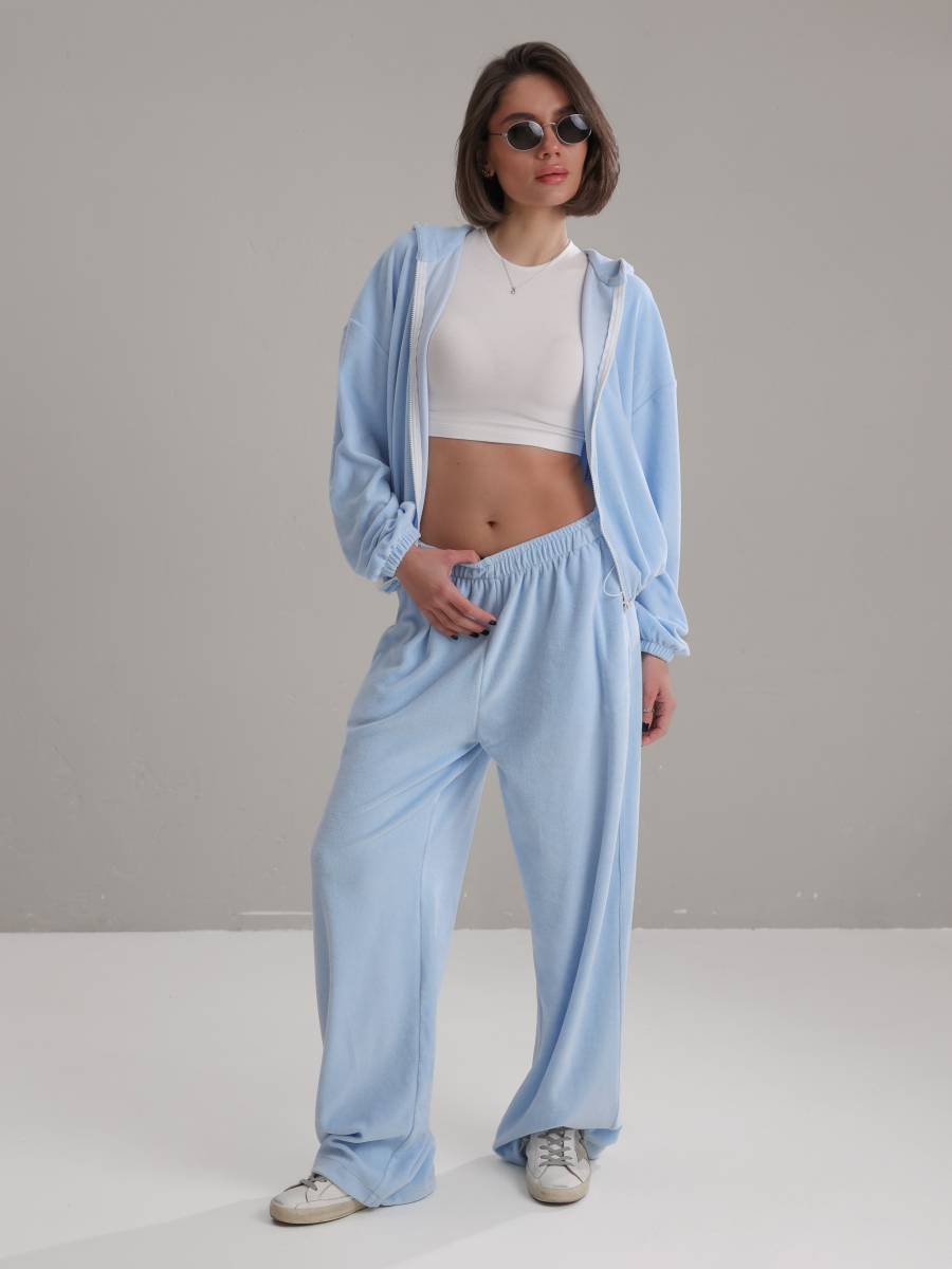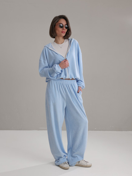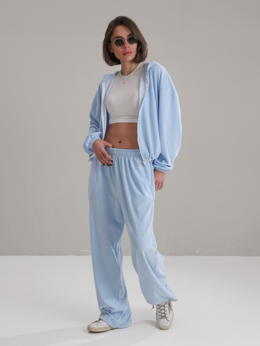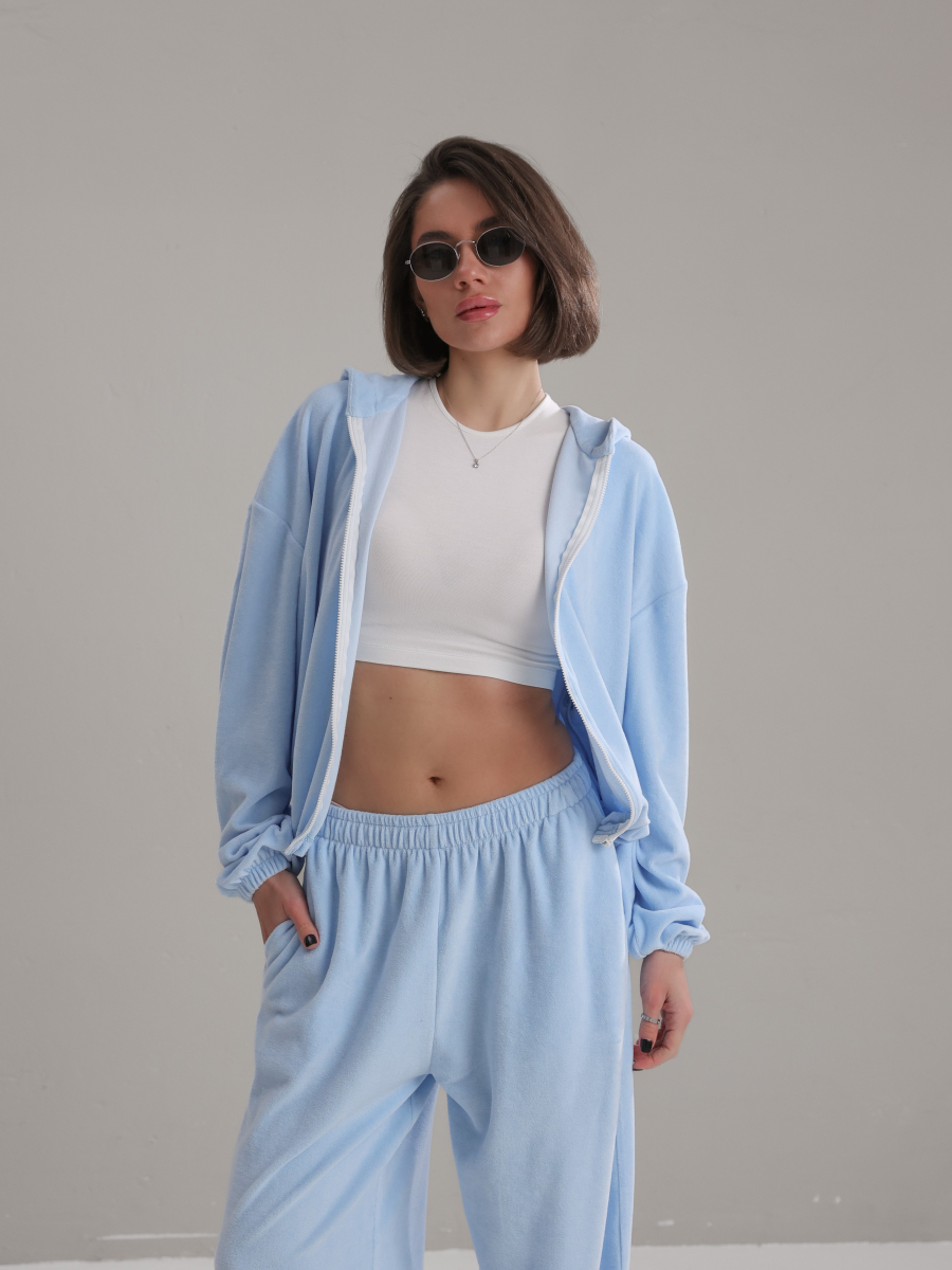 Універсальний комплект, що поєднує комфорт та сучасний дизайн. М’який велюр на бавовняній основі приємний до тіла, дихає та дарує відчуття затишку в будь-яку пору року.