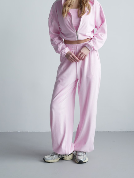 Жіночий велюровий костюм Lola зіп-худі з широкими палаццо на затяжках , рожевий