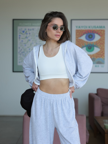 Костюм виглядає елегантно, але водночас зберігає спортивну зручність. Ідеальний вибір для прогулянок, подорожей чи домашнього відпочинку.