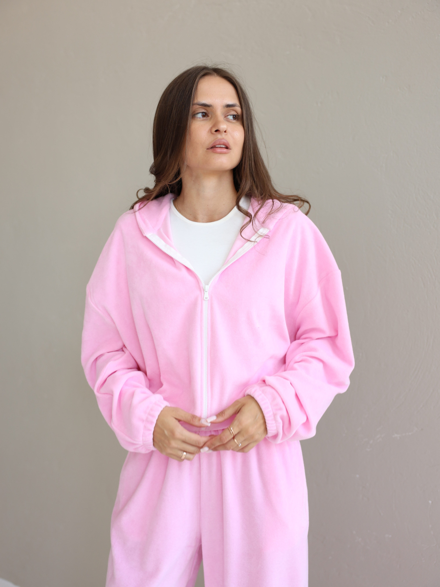 Жіночий велюровий костюм, рожевий