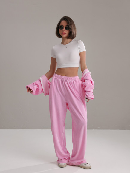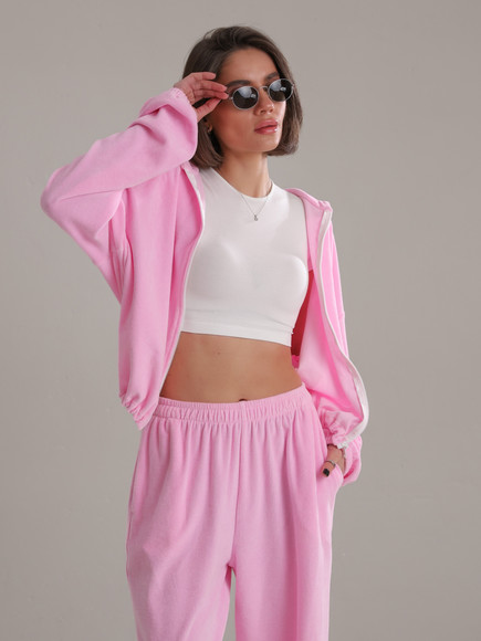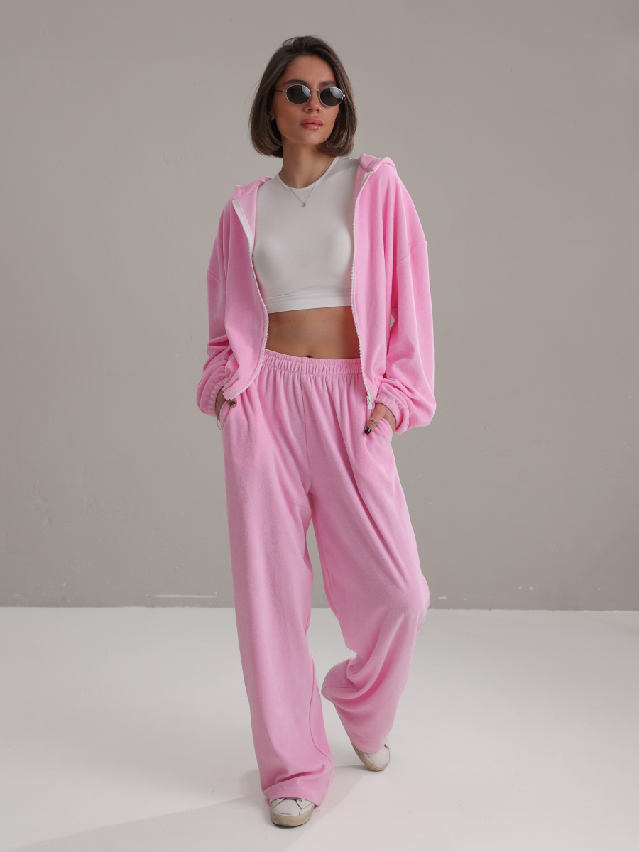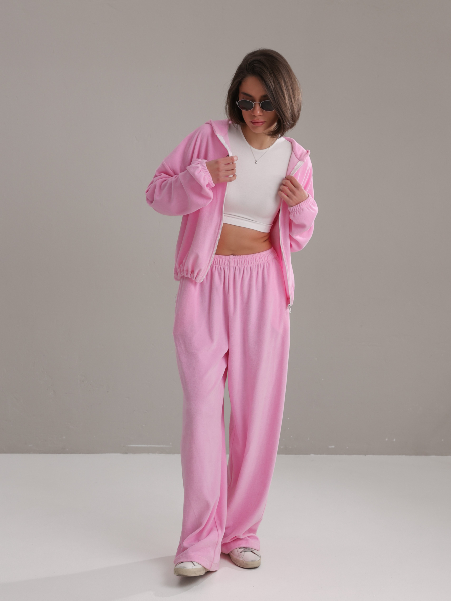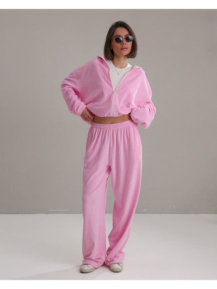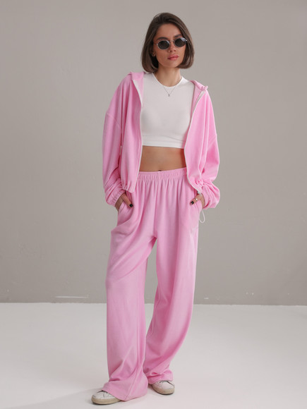 Універсальний комплект, що поєднує комфорт та сучасний дизайн. М’який велюр на бавовняній основі приємний до тіла, дихає та дарує відчуття затишку в будь-яку пору року.