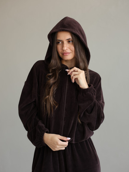 Універсальний комплект, що поєднує комфорт та сучасний дизайн. М’який велюр на бавовняній основі приємний до тіла, дихає та дарує відчуття затишку в будь-яку пору року.