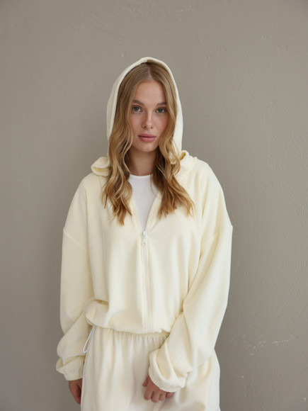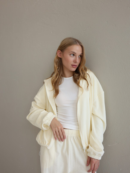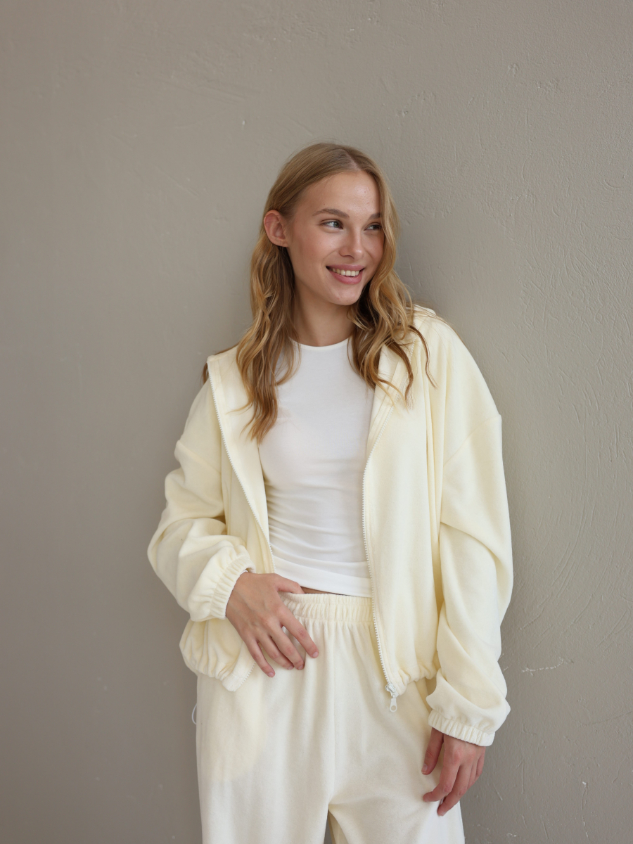 Універсальний комплект, що поєднує комфорт та сучасний дизайн. М’який велюр на бавовняній основі приємний до тіла, дихає та дарує відчуття затишку в будь-яку пору року.