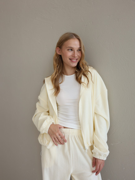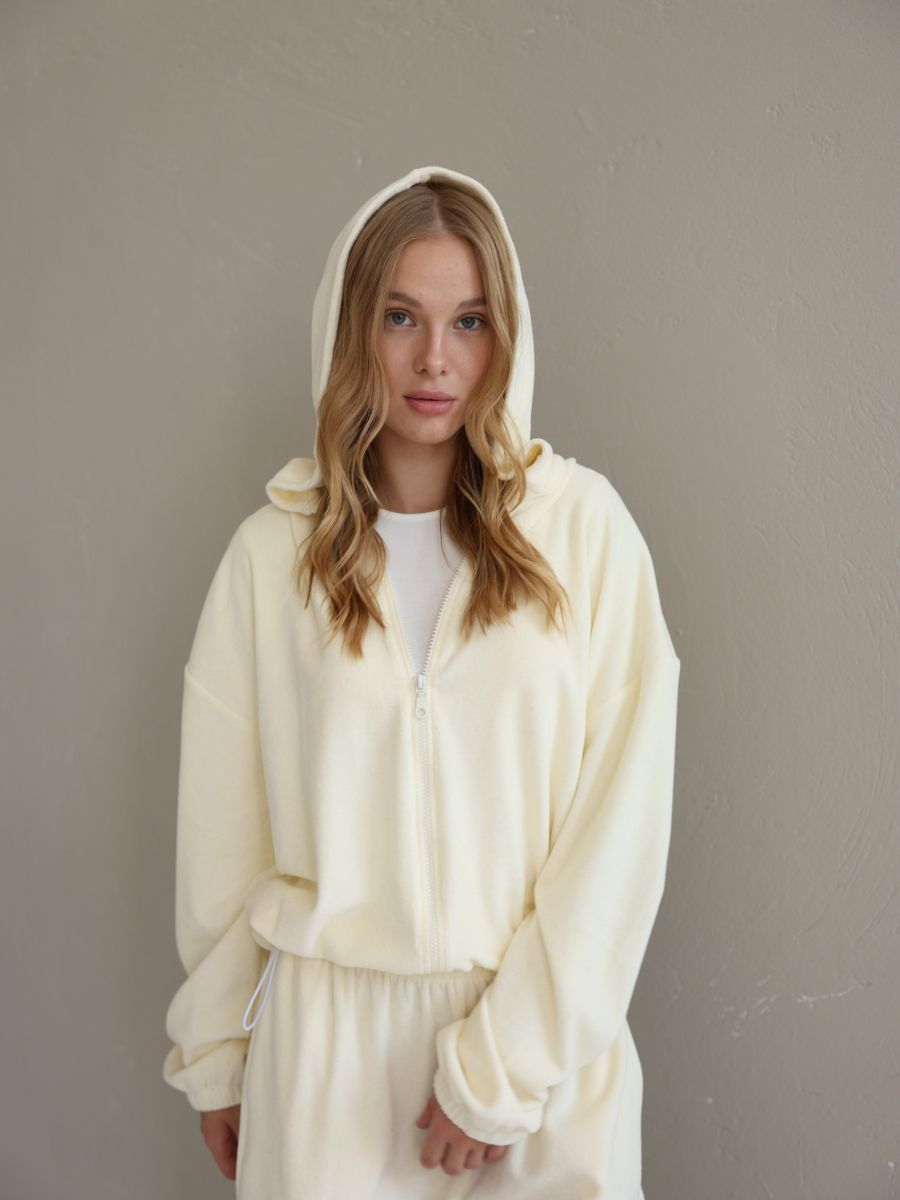 Жіночий велюровий костюм, вершкове масло