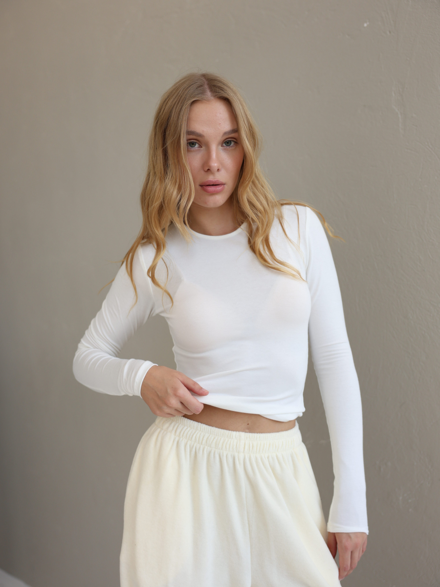 Жіночий лонгслів Slim, біле молоко