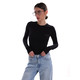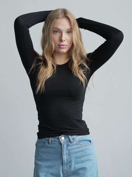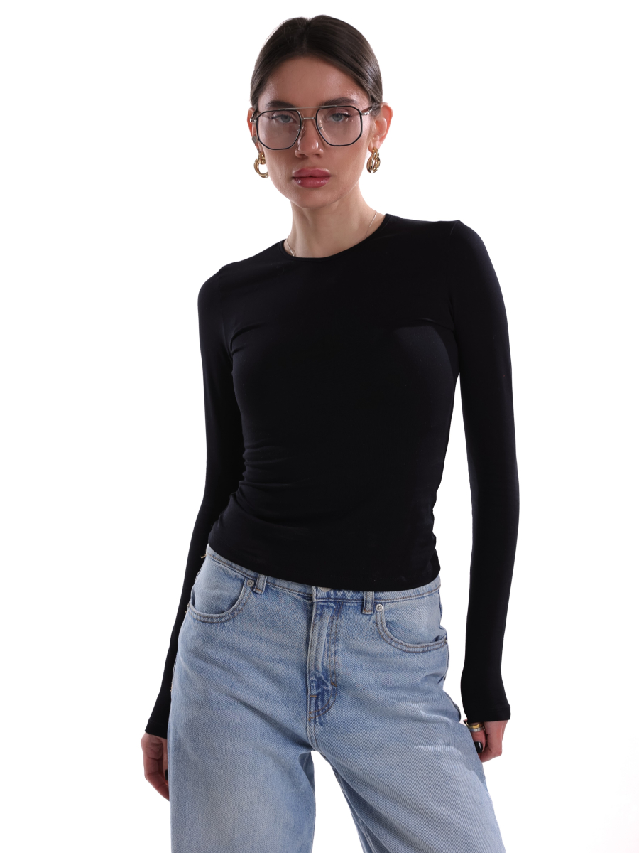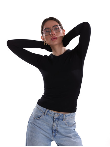 Приталений силует формує витончену лінію тіла, тому лонгслів гармонійно виглядає як у повсякденних образах із джинсами, так і в більш вишуканих луках зі спідницею чи класичними брюками.