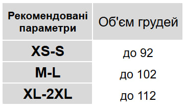 XS-S на обʼєм грудей від 80 до 95 см