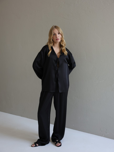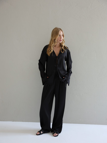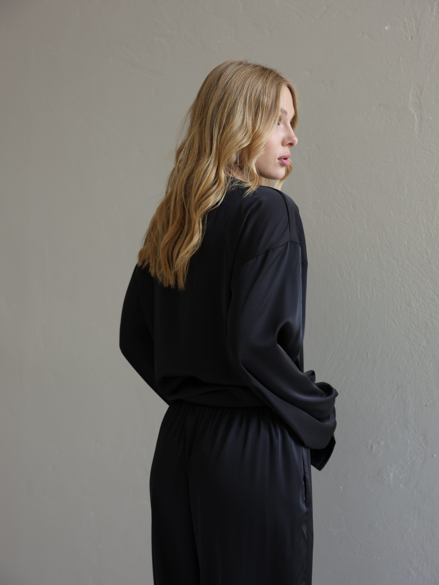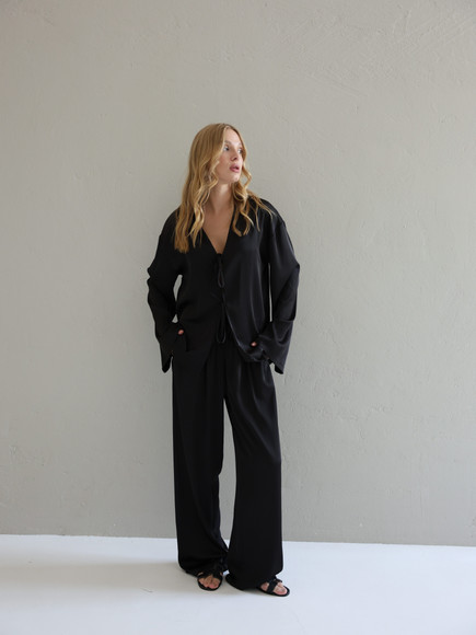 Шовкові штани палаццо — це про свободу руху, легкість і впевненість у собі. Завдяки широкому фасону вони красиво струмують при ході, створюючи елегантний, візуально видовжений силует.