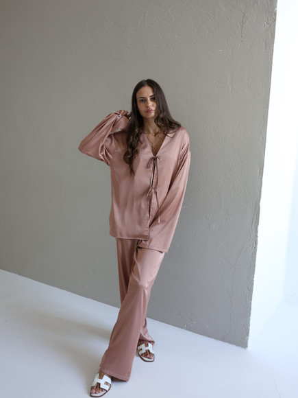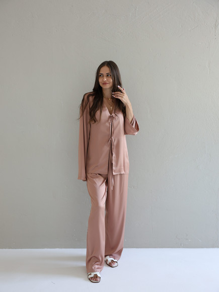 Шовкові штани палаццо — це про свободу руху, легкість і впевненість у собі. Завдяки широкому фасону вони красиво струмують при ході, створюючи елегантний, візуально видовжений силует.