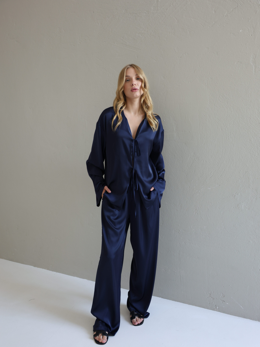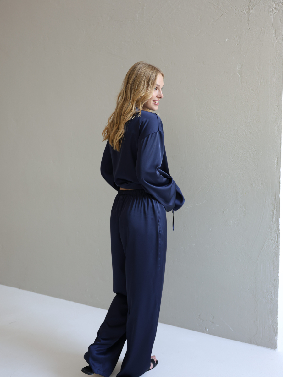Шовкові штани палаццо — це про свободу руху, легкість і впевненість у собі. Завдяки широкому фасону вони красиво струмують при ході, створюючи елегантний, візуально видовжений силует.