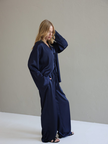 Шовкові штани палаццо — це про свободу руху, легкість і впевненість у собі. Завдяки широкому фасону вони красиво струмують при ході, створюючи елегантний, візуально видовжений силует.