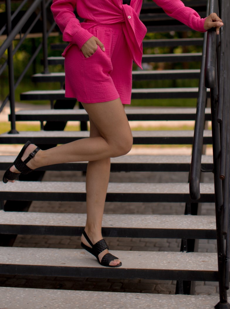 Жіночі муслінові шорти Fly - ідеальний варіант на літню спеку: на кожен день, на пляж чи для відпочинку. Легкі, адже виконані з натуральної «дихаючої» тканини преміум сегменту - муслину. Шорти високої посадки, вище коліна. З обох боків зручні кишені. На поясі еластична резинка, що не перетискає шкіру.