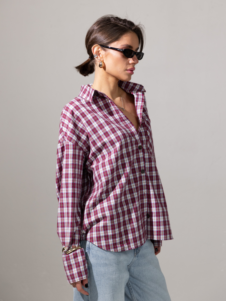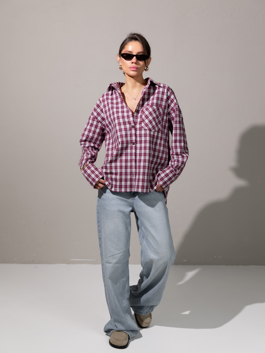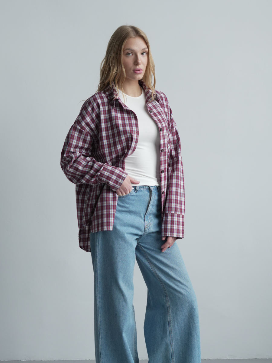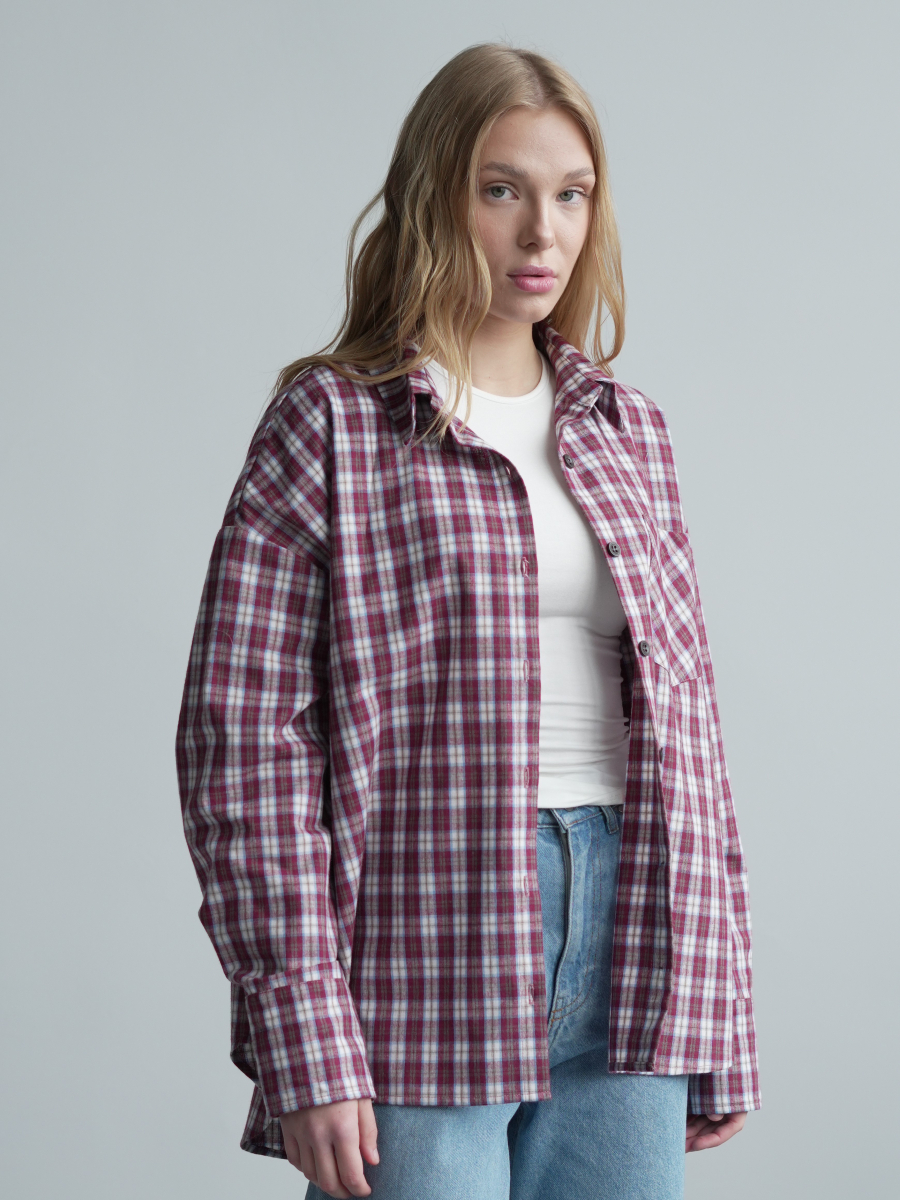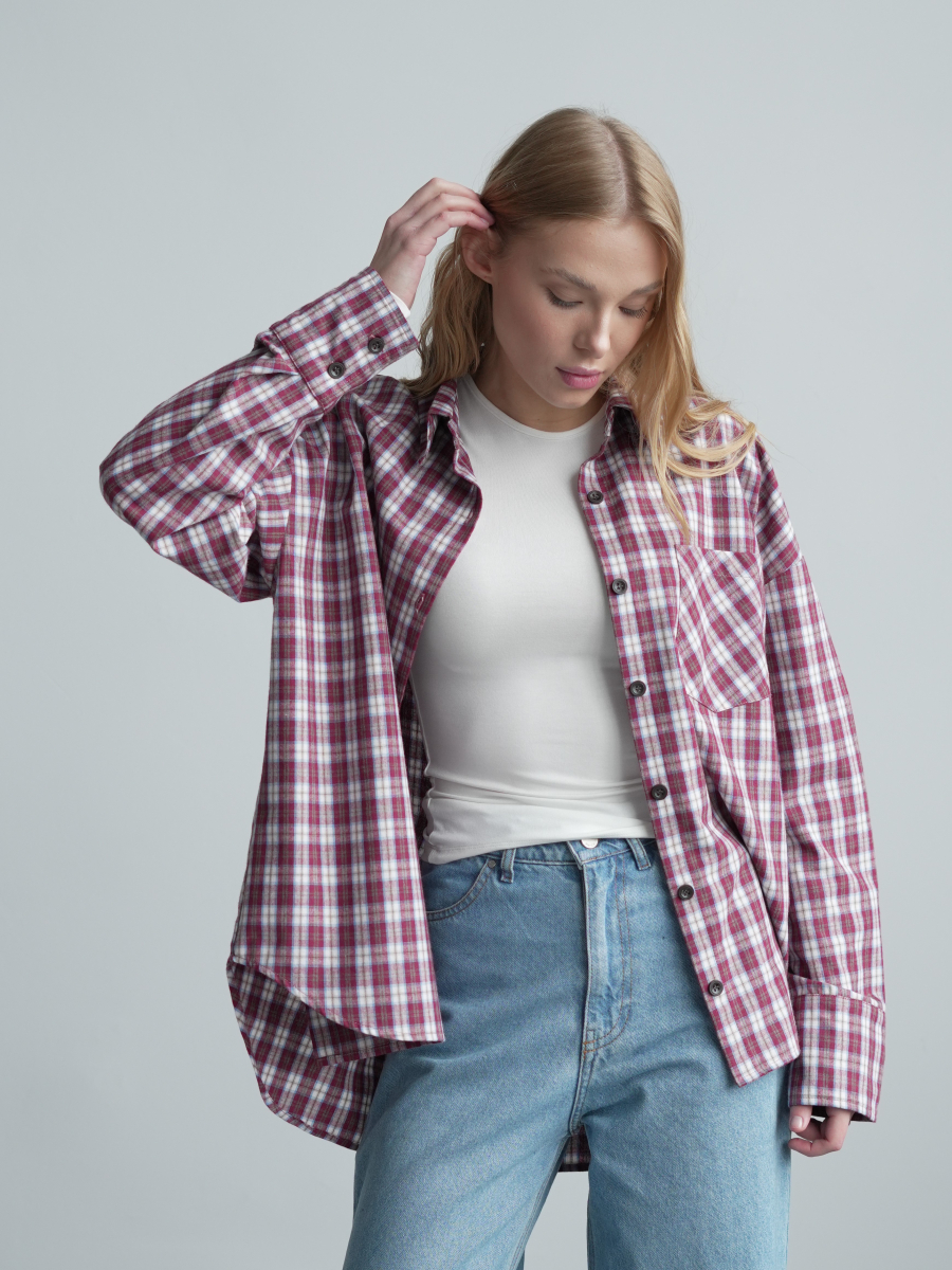 Матеріал має щільну, але дихаючу структуру, що робить сорочку ідеальною як для прохолодної погоди, так і для багатошарових образів. Оверсайз крій забезпечує зручну посадку, а універсальний клітинний принт легко поєднується з джинсами, брюками чи лосинами.