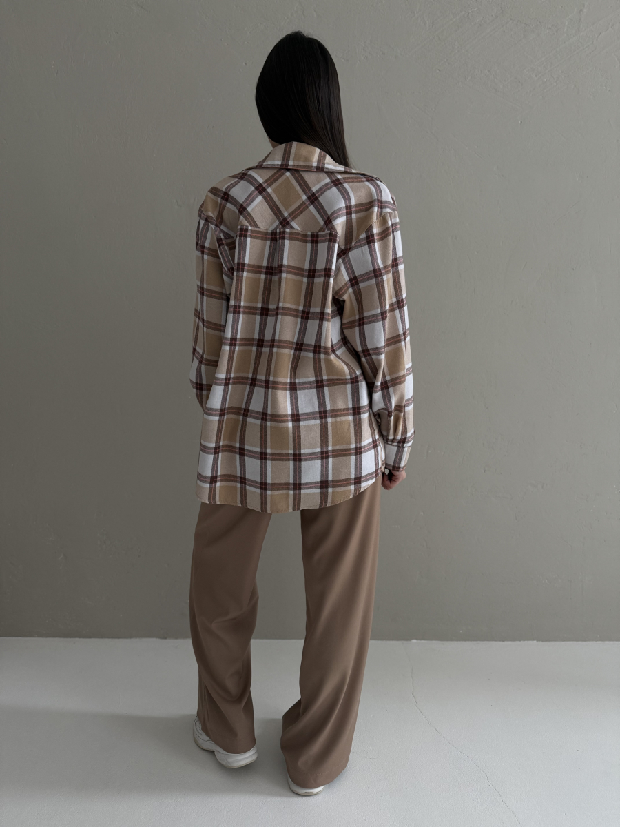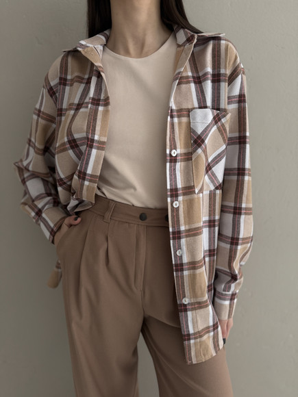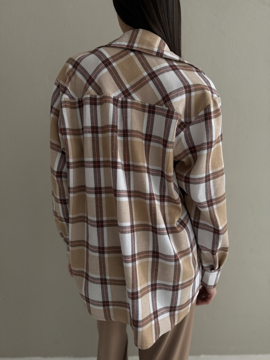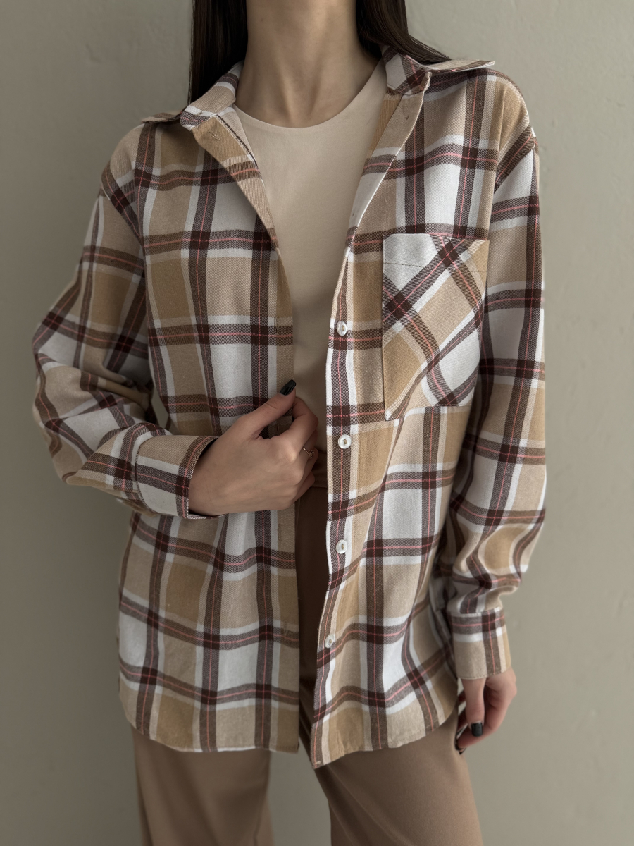 Стильна сорочка оверсайз у трендову клітинку. М'яка тканина та вільний крій забезпечують комфорт і затишний образ.