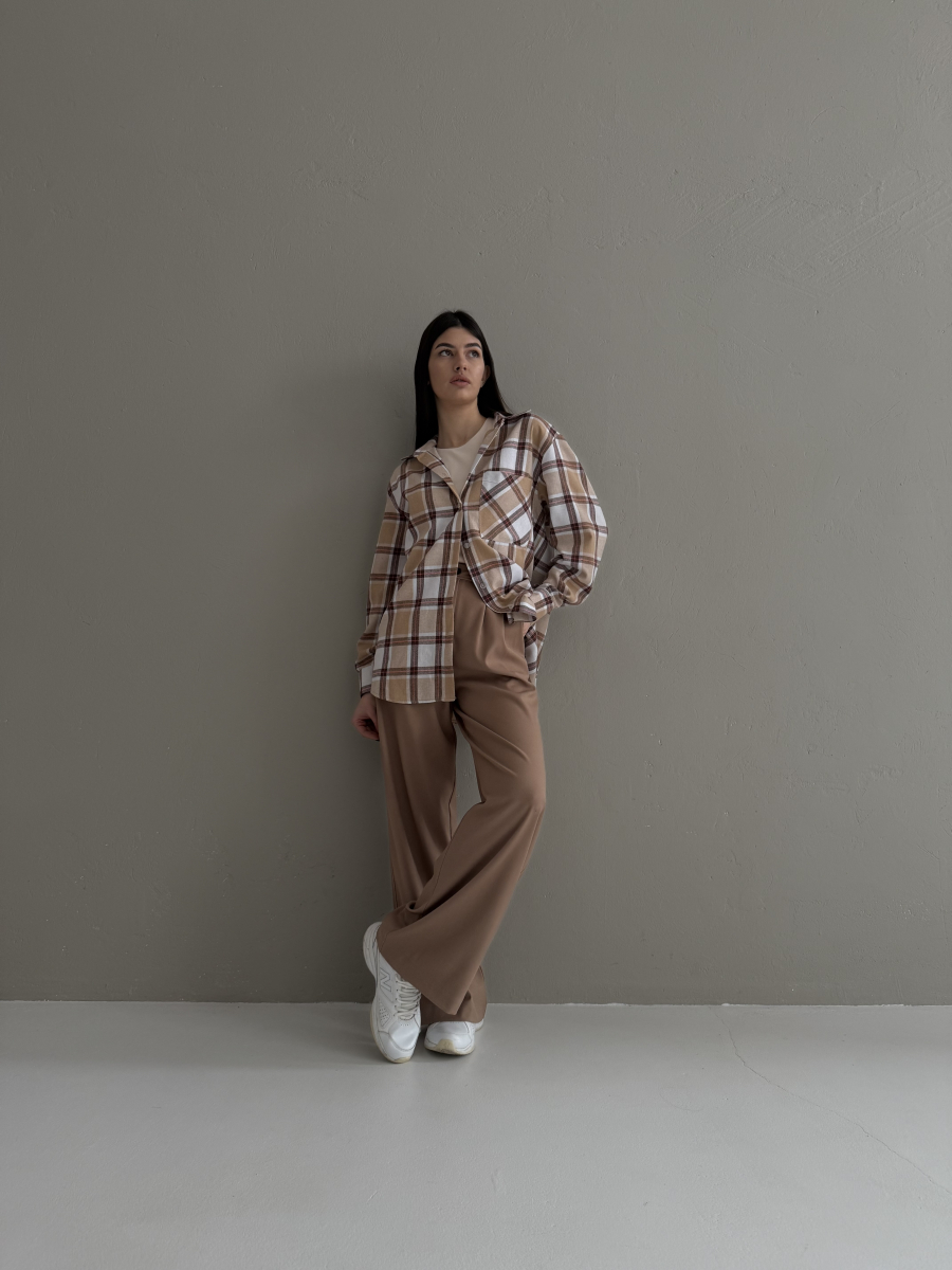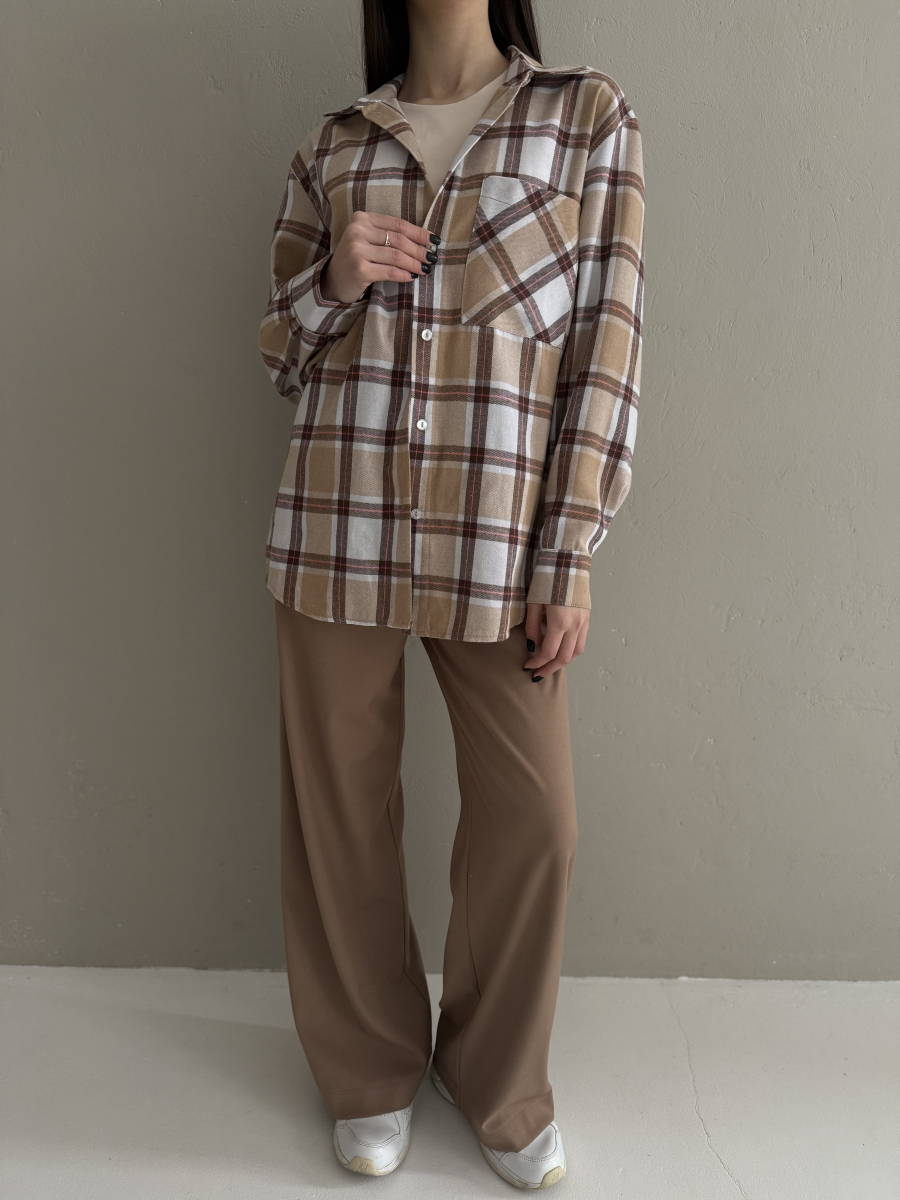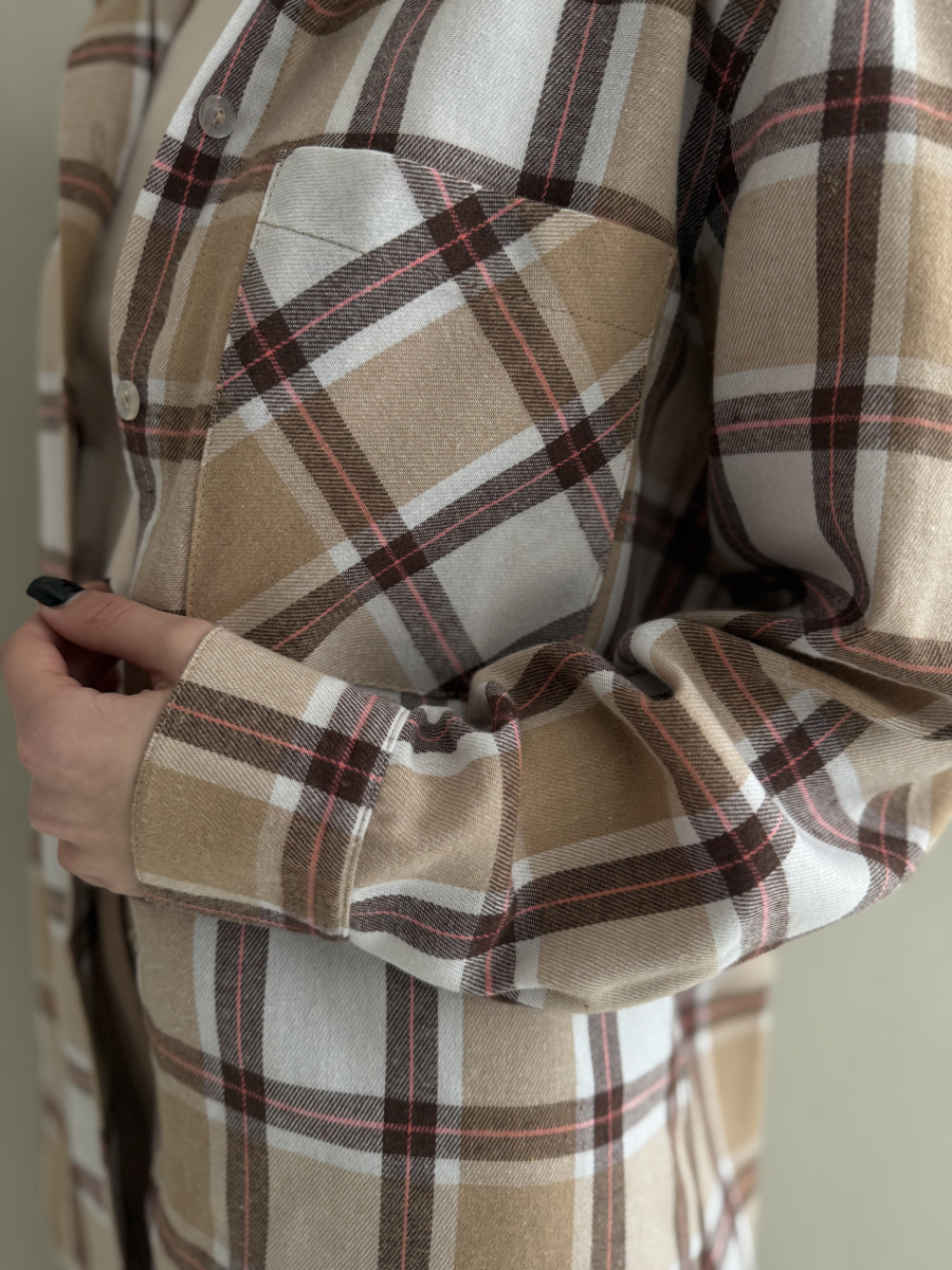 Стильна сорочка оверсайз у трендову клітинку. М'яка тканина та вільний крій забезпечують комфорт і затишний образ.