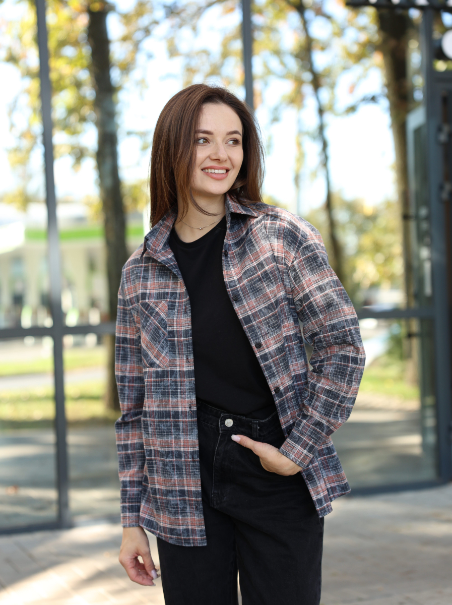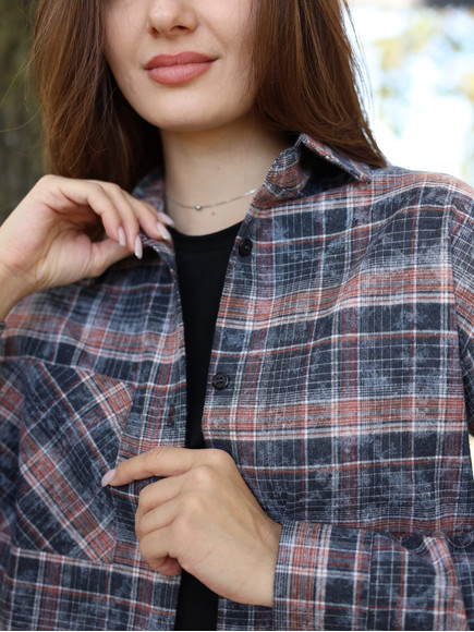 Cорочка Est пошита з фланелі , в складі якої 80% бавовни та 20% поліестру. Модель унісекс і має класичний прямий крій, кишеню спереду та ґудзики. Пошиття дуже високої якості.