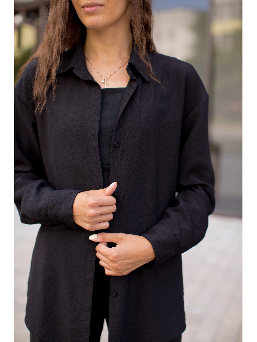Легкий жіночий костюм Fly - це сорочка та штани палаццо, які виконані з льону штапель. Тканина чудово вбирає вологу, що дозволяє зберігати відчуття свіжості та комфорту навіть у спекотну погоду. Подовжена сорочка на ґудзиках ідеально поєднується з будь-яким топом або майкою. Штани палаццо високої посадки з еластичною резинкою на поясі не перетискають шкіру. Їх можна носити з кросівками, босоніжками, кедами чи підборами. Цей стильний та елегантний костюм підійде на офіційний захід, прогулянку або вечірку.