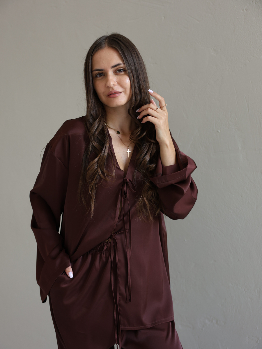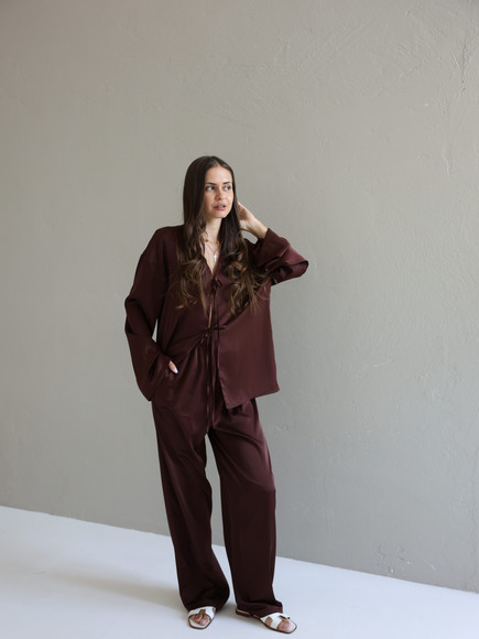 Сорочка з шовку на зав’язках - втілення легкості, жіночності й сучасної елегантності. Лаконічний крій, м’який блиск тканини та витончені зав’язки створюють делікатний, але впевнений акцент в образі.