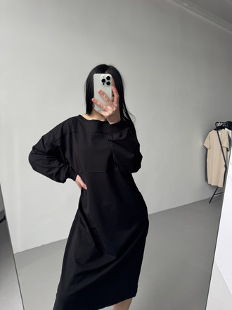 Сукня Ріана міді з довгим рукавом вільного крою, чорний