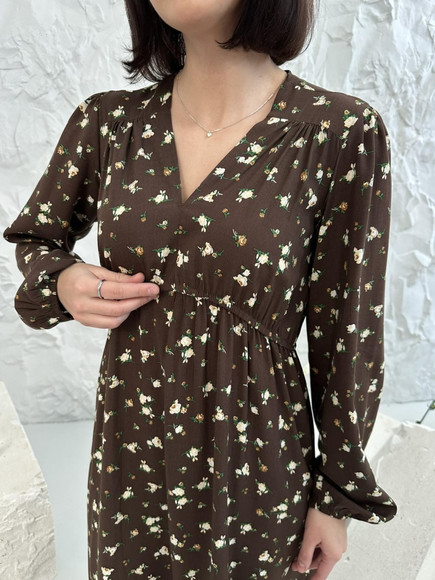 Сукня міді з квітковим принтом, шоколад