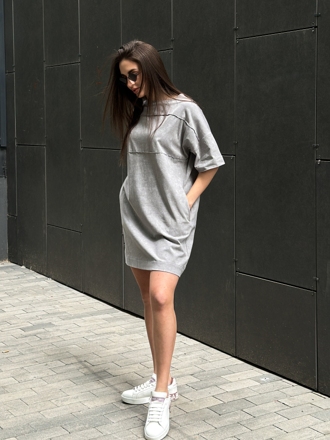 Сукня Ріана Міні вільного крою з дизайнерськими виточками. Виконана з натуральної бавовни. Зручний фасон, а також тканина, що дихає забезпечить комфорт в спекотному приміщенні. Має вмісткі кишені з двох сторін. Горловина виконані з матеріалу - рібани, що не перетискає шкіру та не розтягується. Легко комбінується з іншими предметами гардеробу