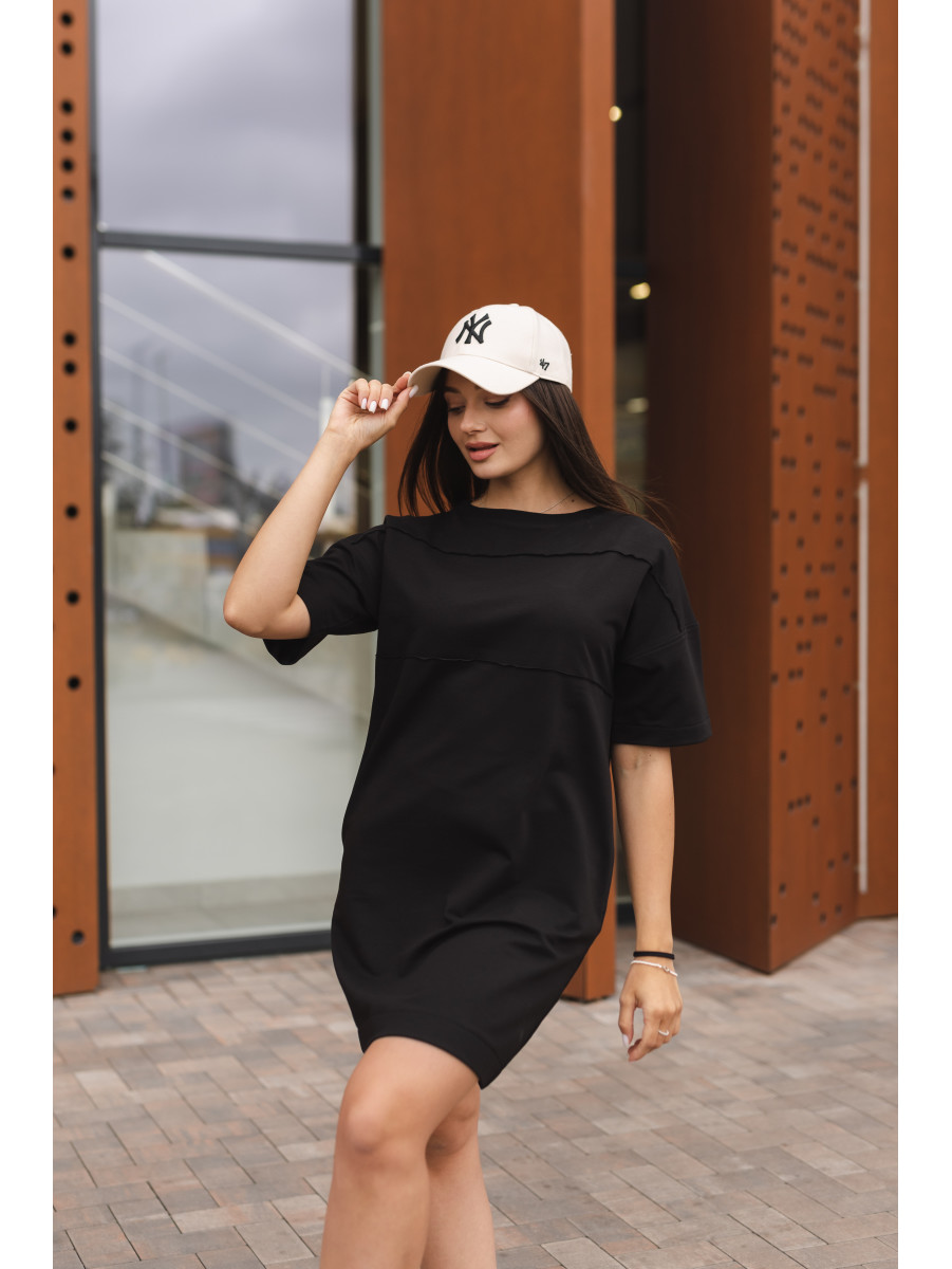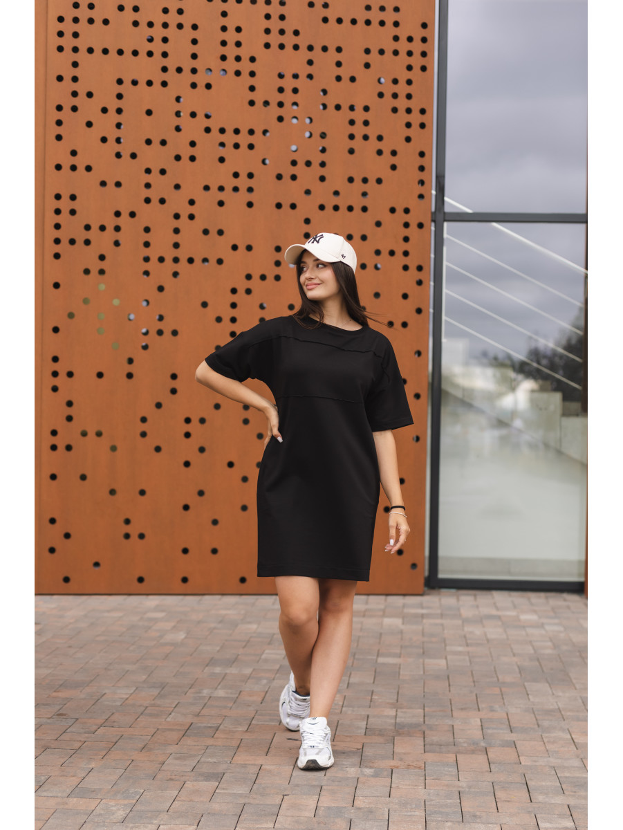 Сукня Ріана Міні вільного крою з дизайнерськими виточками. Виконана з натуральної бавовни. Зручний фасон, а також тканина, що дихає забезпечить комфорт в спекотному приміщенні. Має вмісткі кишені з двох сторін. Горловина виконані з матеріалу - рібани, що не перетискає шкіру та не розтягується. Легко комбінується з іншими предметами гардеробу