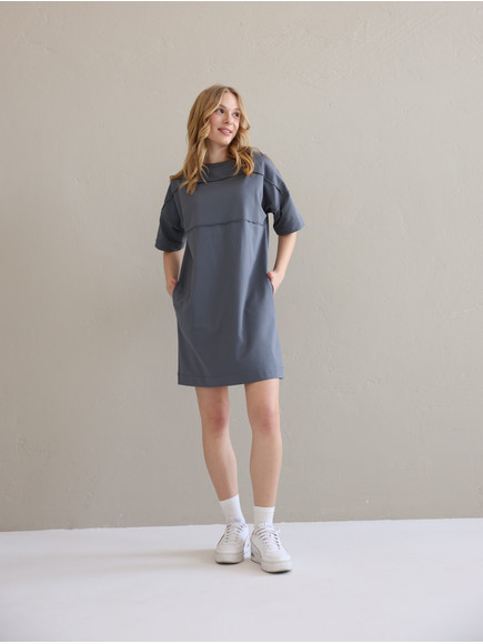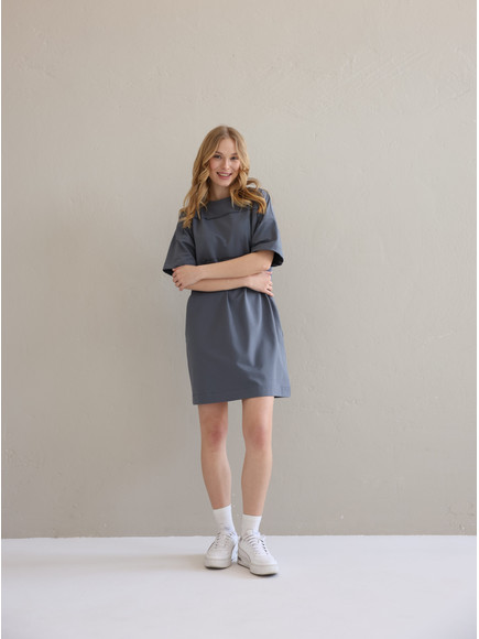 Сукня Ріана Міні вільного крою з дизайнерськими виточками. Виконана з натуральної бавовни. Зручний фасон, а також тканина, що дихає забезпечить комфорт в спекотному приміщенні. Має вмісткі кишені з двох сторін. Горловина виконані з матеріалу - рібани, що не перетискає шкіру та не розтягується. Легко комбінується з іншими предметами гардеробу
