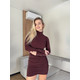 М’яка еластична тканина з делікатним блиском красиво переливається при русі, підкреслюючи силует. Драпірування візуально моделює фігуру, додає жіночності та вигідно акцентує талію й лінії тіла. Довжина міні відкриває ноги, створюючи сміливий і водночас елегантний настрій.
