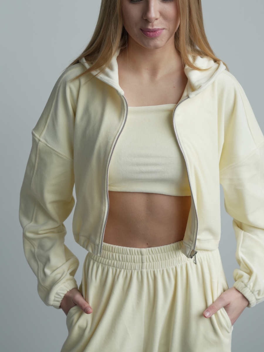 Легкий топ-бандо з велюра - ідеальний вибір для спекотних днів. Лаконічний крій підкреслює лінії тіла, а натуральна тканина дихає та дарує комфорт. Носіть соло або комбінуйте з сорочкою чи костюмом для багатошарових образів.